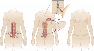 Rycina 4. Schemat ukazujący zasadę przygotowania i przeniesienia płata DIEP.