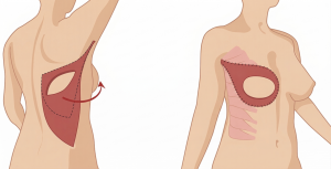 • rekonstrukcja z wykorzystaniem tkanek własnych (płaty tkankowe lub przeszczep tłuszczu)